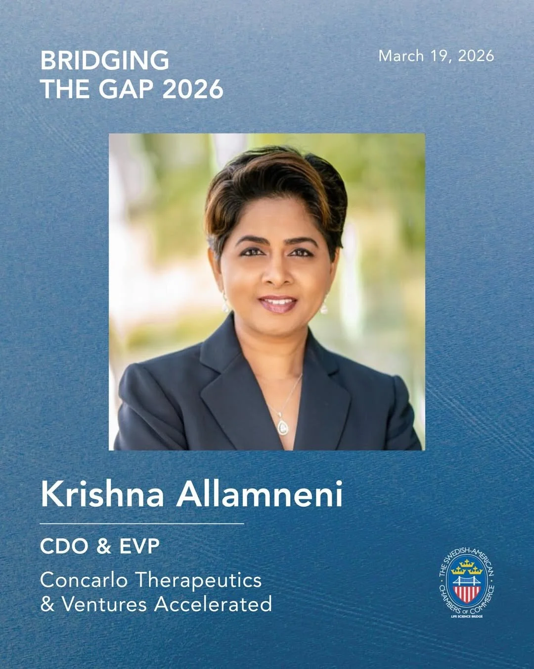 Dr. Krishna P. Allamneni is an experienced biopharmaceutical executive and strategic advisor with more than 25 years of expertise in early drug development and corporate strategy. She currently serves as Chief Development Officer and Executive Vice President at Concarlo Therapeutics and Senior Advisor at Ventures Accelerated AB, guiding therapeutics from discovery to commercialization across multiple therapeutic areas and modalities.
